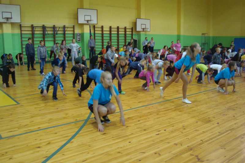 26. septembra rītā skolēni pulcējās sporta zālē uz ikgadējo Olimpiskās dienas rīta vingrošanu. Vingrošanas instruktoru- Gitas Priedes, Annijas Dāboliņas, Lauras Ercikas, Līgas Zundes un Paulas Gūtmanes vadībā, skolēni emocionāli izpildīja rīta rosmes vingrojuma kompleksu. Īpašus ceļavārdus un uzmundrinājumu teica skolas direktore A. Rubeze, novēlot 44 skolēniem, kuri teju dosies uz Limbažiem igauņu mieru, lietuviešu sīkstumu un latviešu azartu.